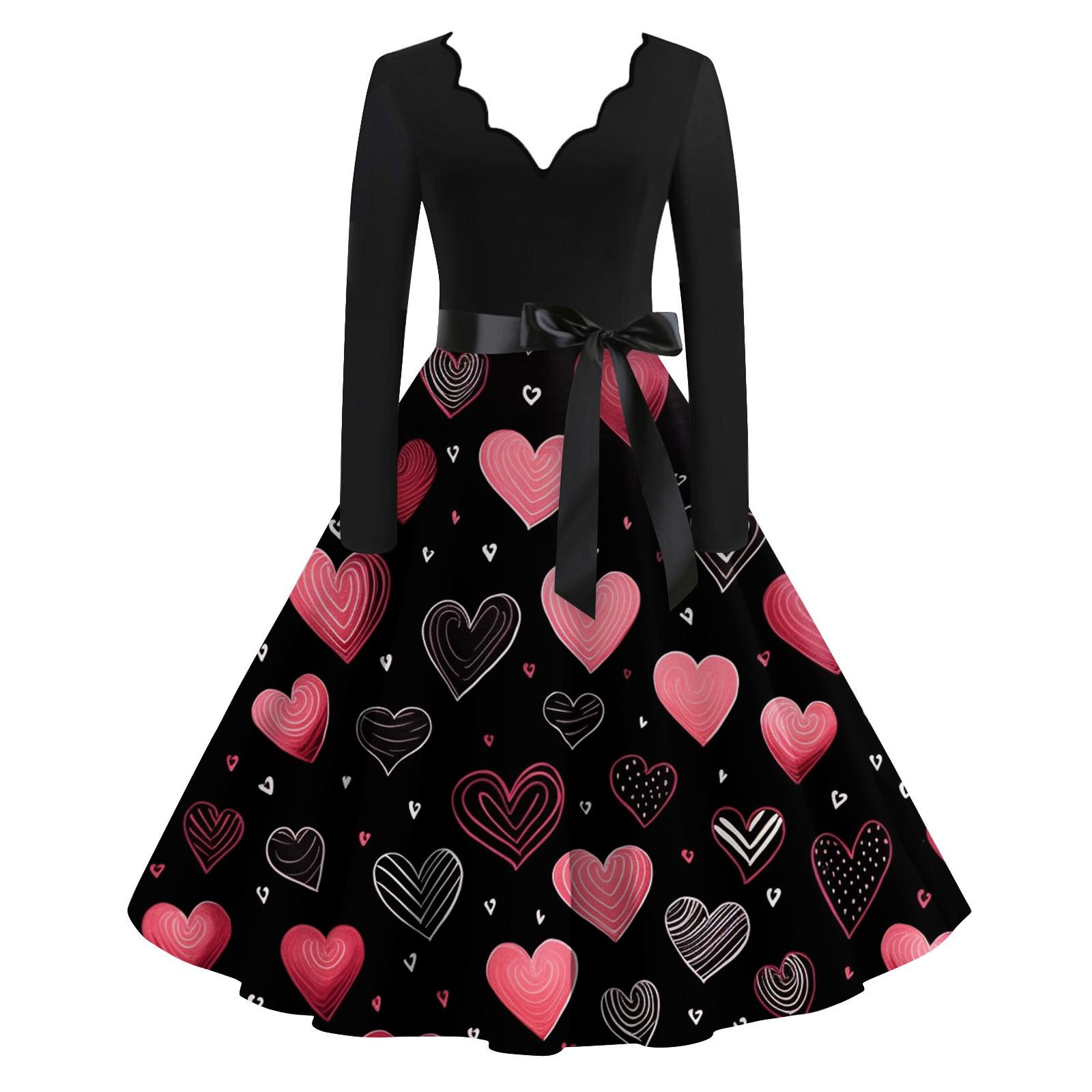 Женское расклешенное платье с принтом для женщин, платье с длинным рукавом, вечерние повседневные платья L чёрный
