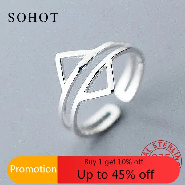 Женское регулируемое кольцо из серебра 925 пробы, с геометрическим рисунком