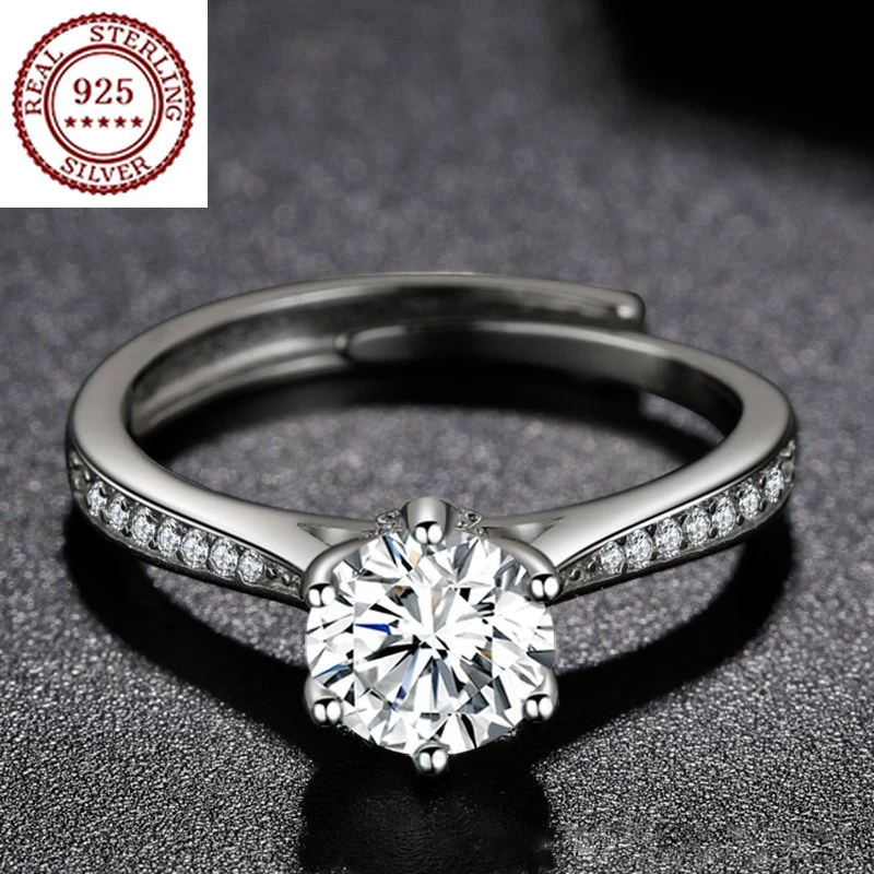 Женское регулируемое кольцо с имитацией муассанита из серебра 925 пробы и платины