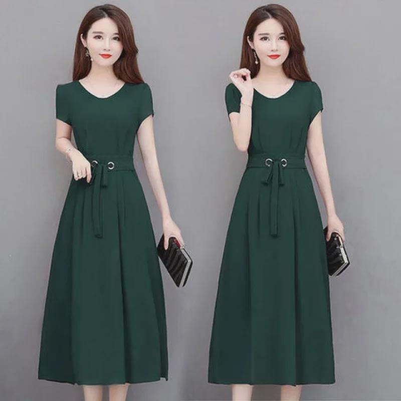 Женское ретро-платье А-силуэта черного цвета больших размеров, утягивающее, прикрывающее живот, в корейском стиле на лето L зелёный