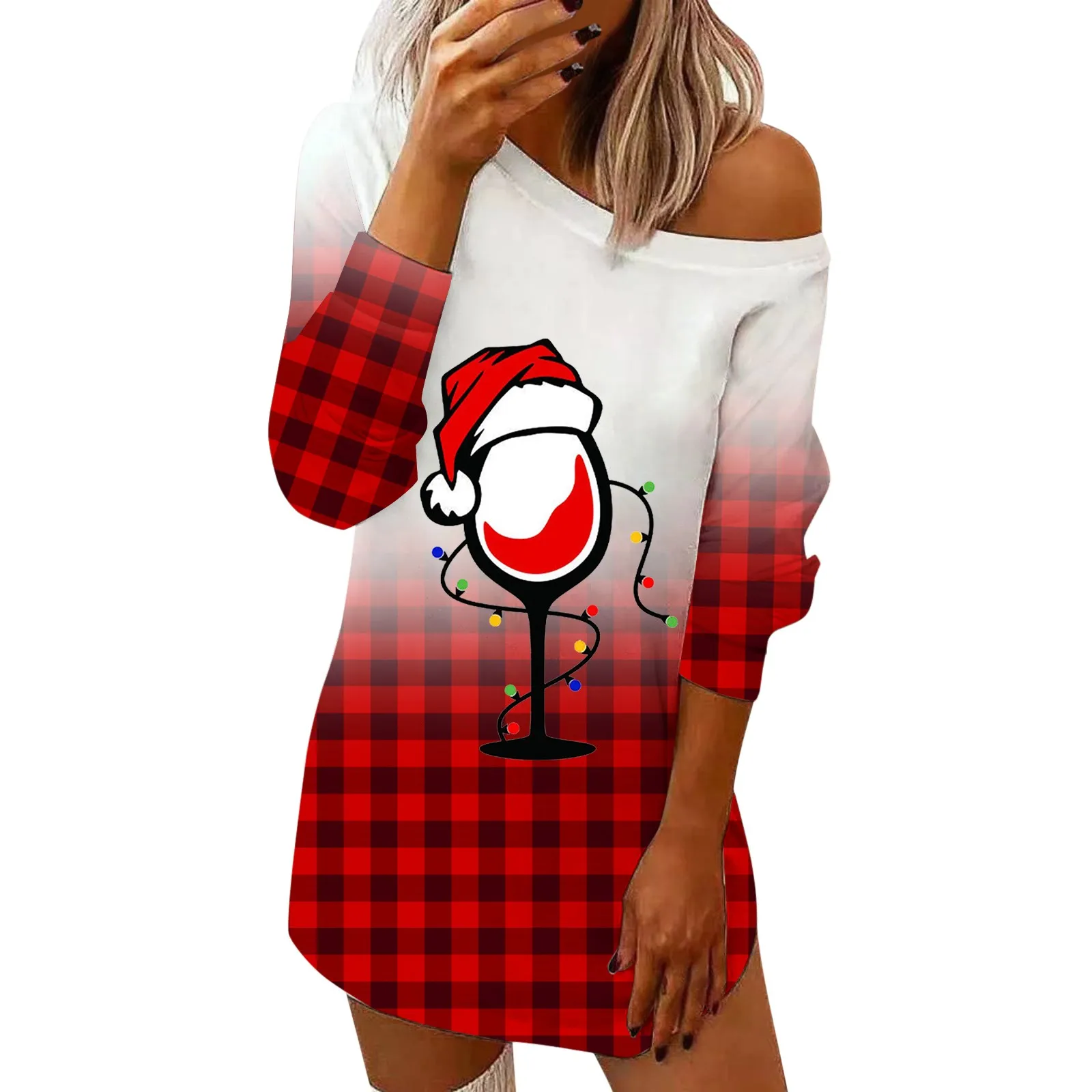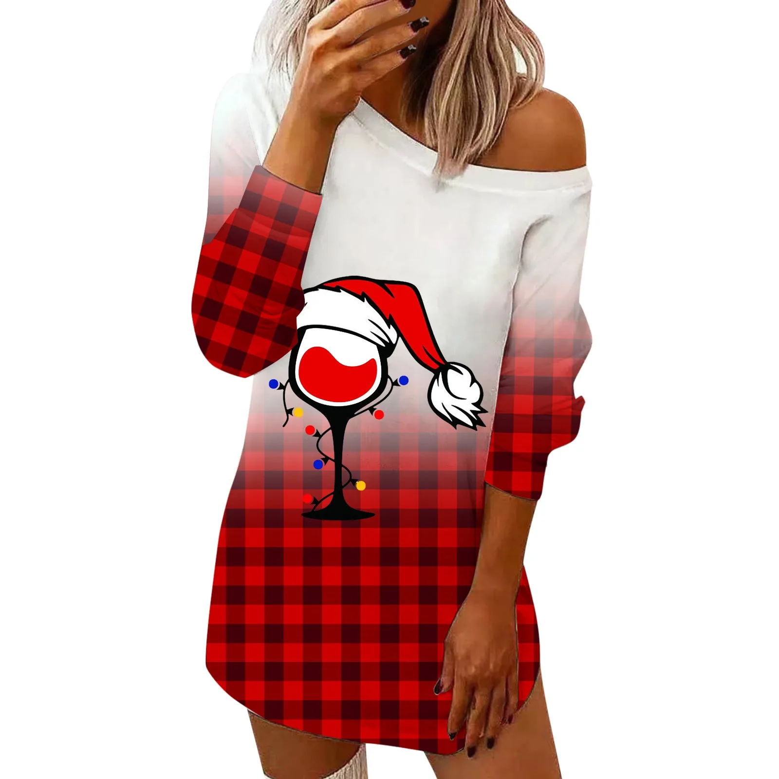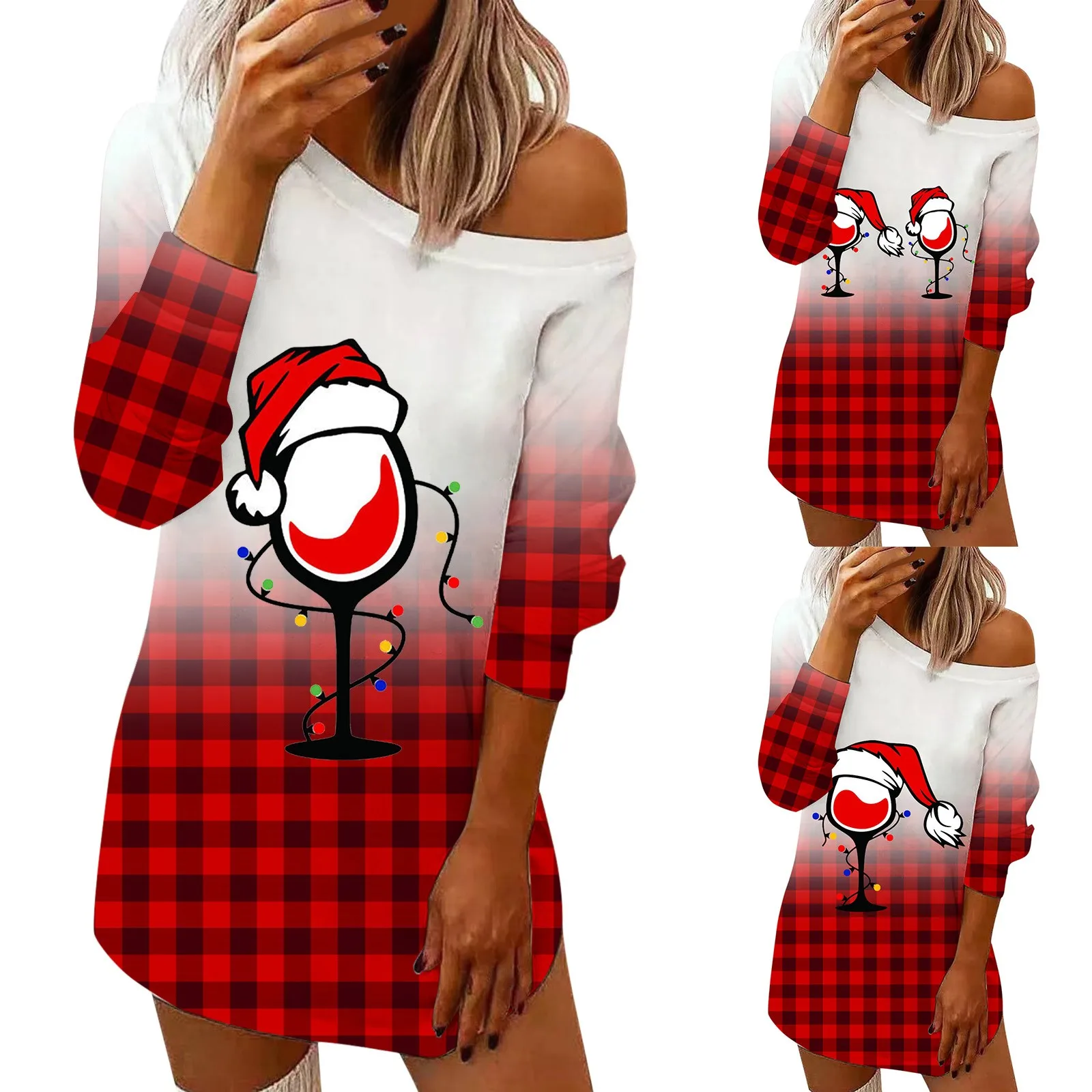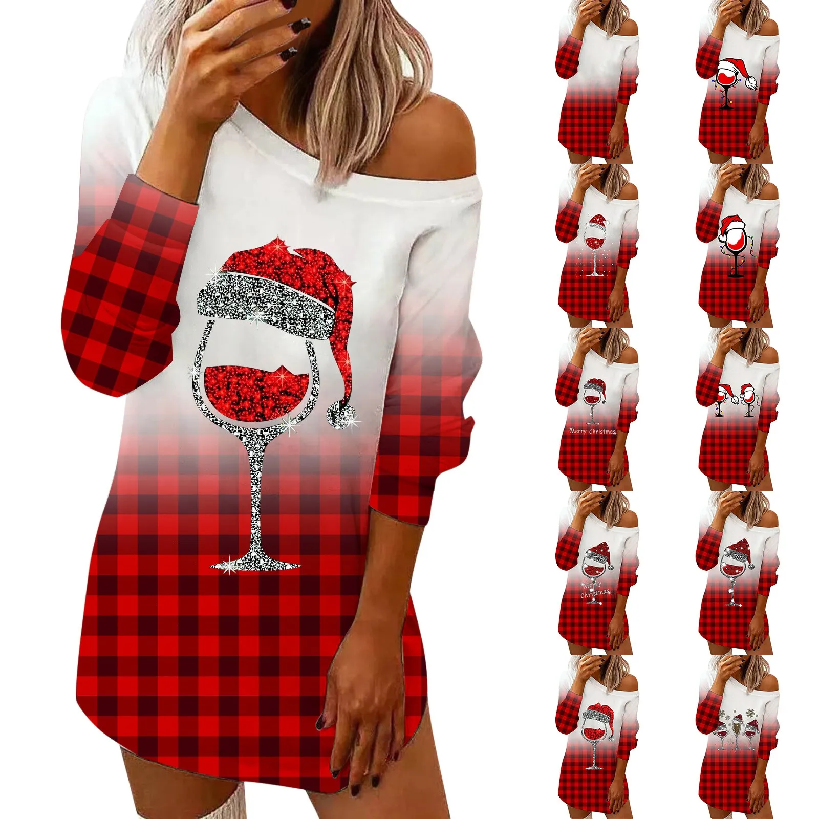 Женское рождественское платье-пуловер с длинным рукавом и круглым вырезом