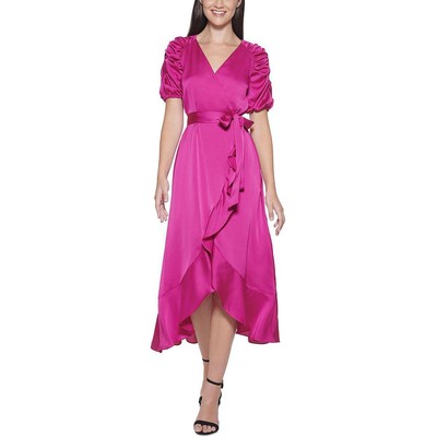 Женское розовое атласное платье миди с запахом Kensie BHFO 4007, Fuchsia