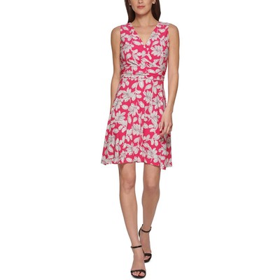 Женское розовое мини-платье Tommy Hilfiger с принтом и пышной юбкой Petites BHFO 7042, Hot pink multi