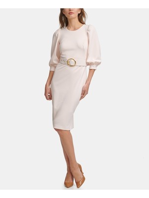 Женское розовое платье-футляр из крепа с длинными рукавами CALVIN KLEIN, Розовый