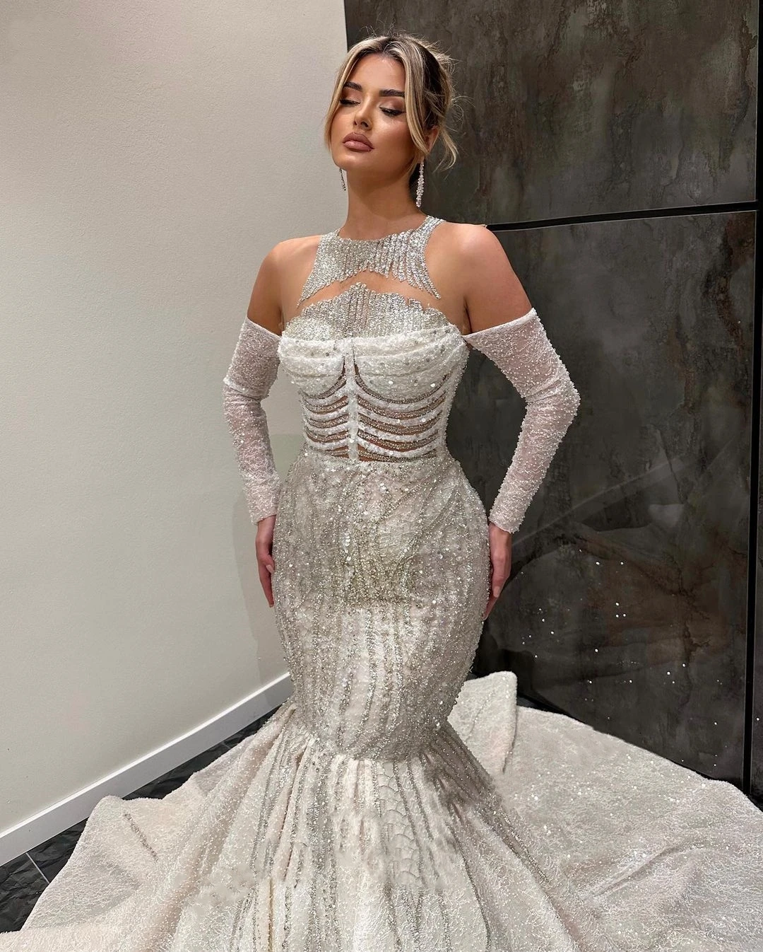 Женское свадебное платье с блестками It's yiiya, белое платье с длинным рукавом и круглым вырезом на лето 2019