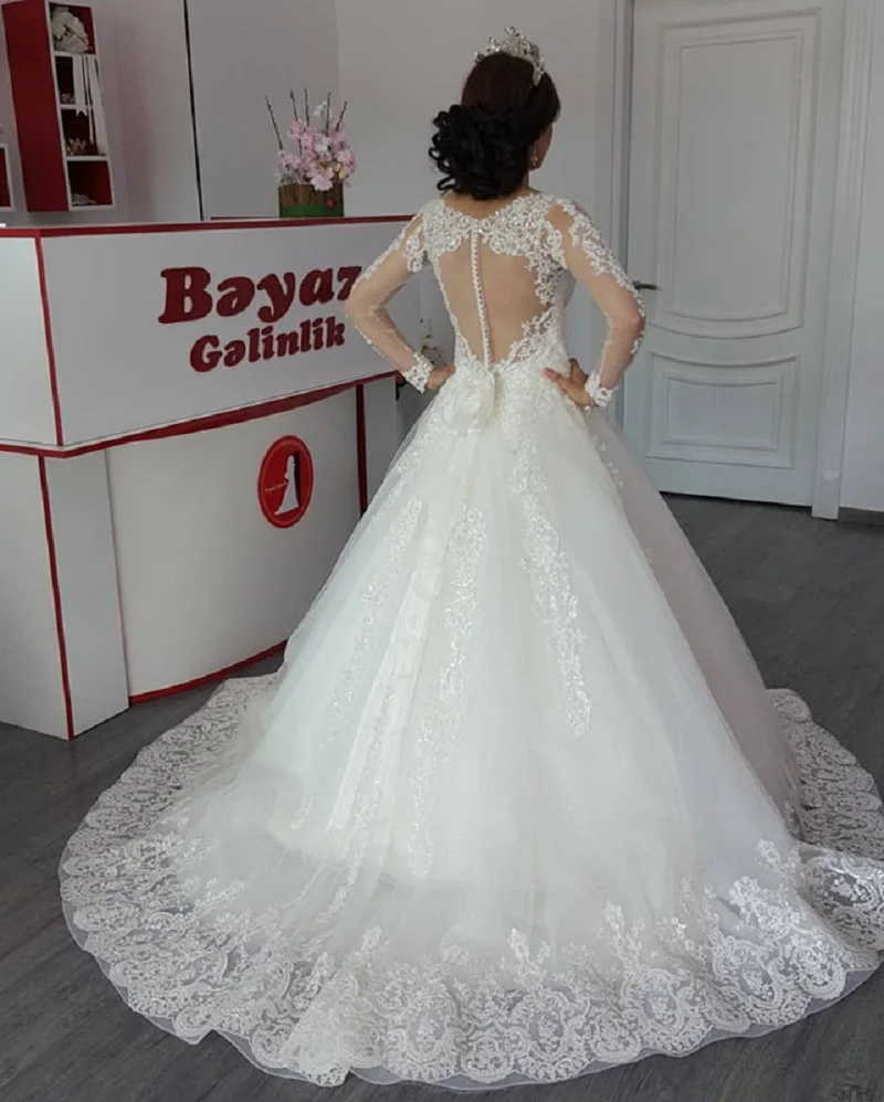 Женское свадебное платье с длинным рукавом, кружевное свадебное платье принцессы с бисером, женское платье невесты, robe de mariee