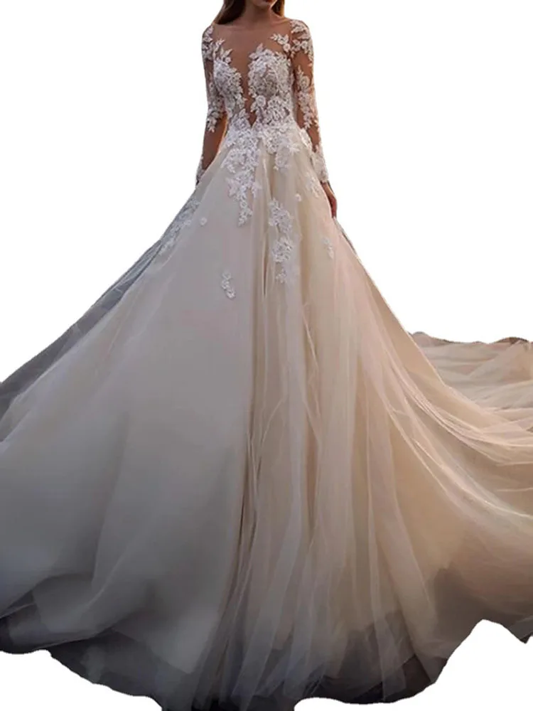 Женское свадебное платье с длинным рукавом, открытой спиной и кружевом