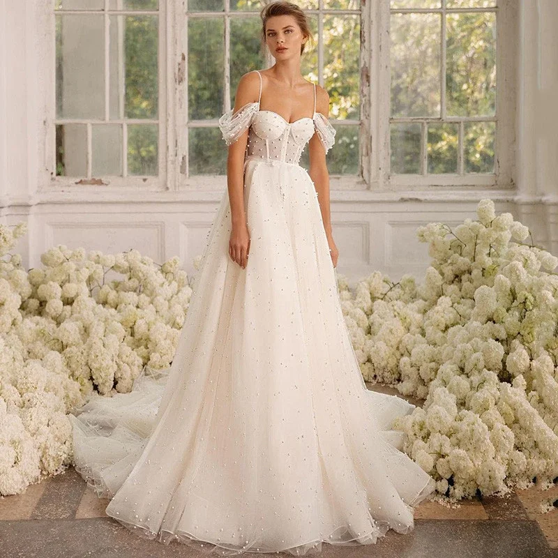 Женское свадебное платье It's yiiya, белое винтажное платье-трапеция цвета слоновой кости, расшитое бисером, с открытыми плечами и оборками на лето 2019