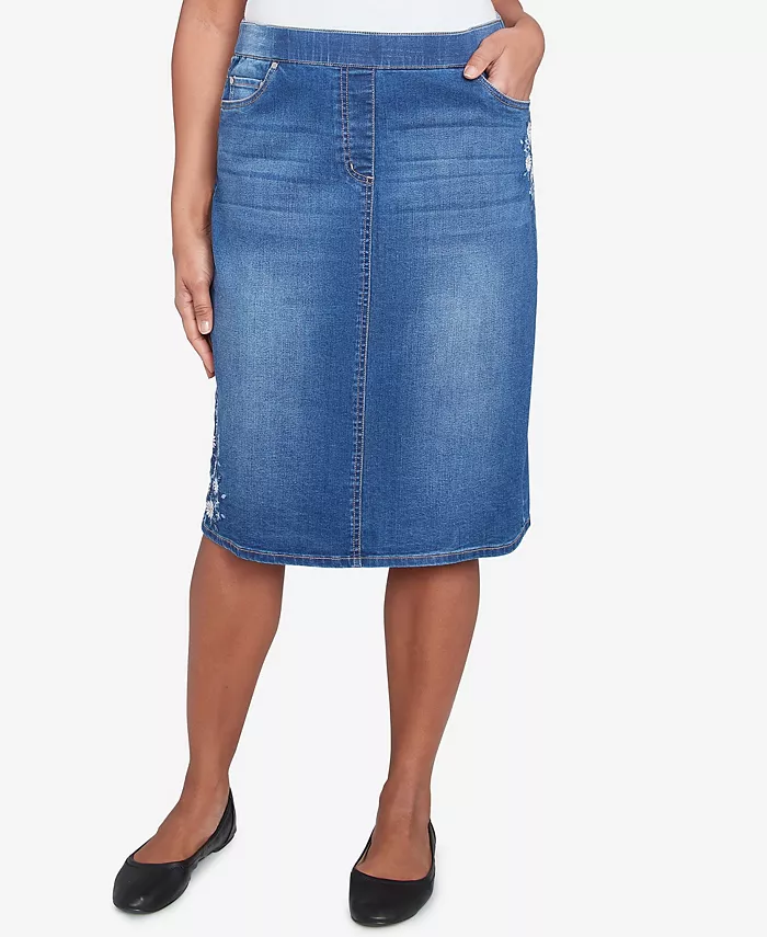 Женская джинсовая юбка на резинке с цветочной вышивкой Flower Power Alfred Dunner, синий