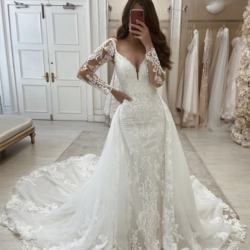 Женское свадебное платье MACDOUGAL, свадебное платье-трапеция со съемными длинными рукавами и аппликацией, 2 в 1, 2022