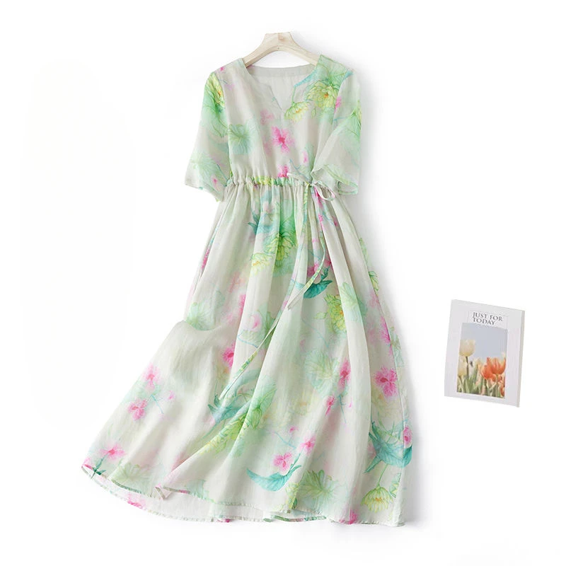 Женское свободное платье из хлопка и льна, повседневное длинное ТРАПЕЦИЕВИДНОЕ ПЛАТЬЕ С Коротким Рукавом, модель V74 на лето, 2024