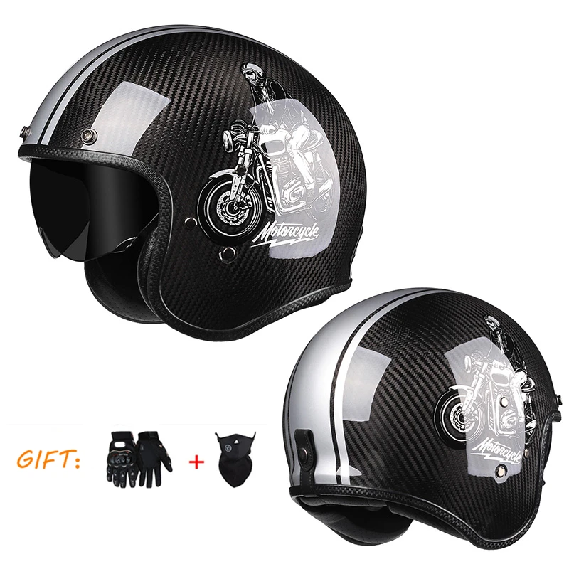 Мотоциклетный шлем из углеродного волокна 3/4 с внутренним козырьком и открытым лицом