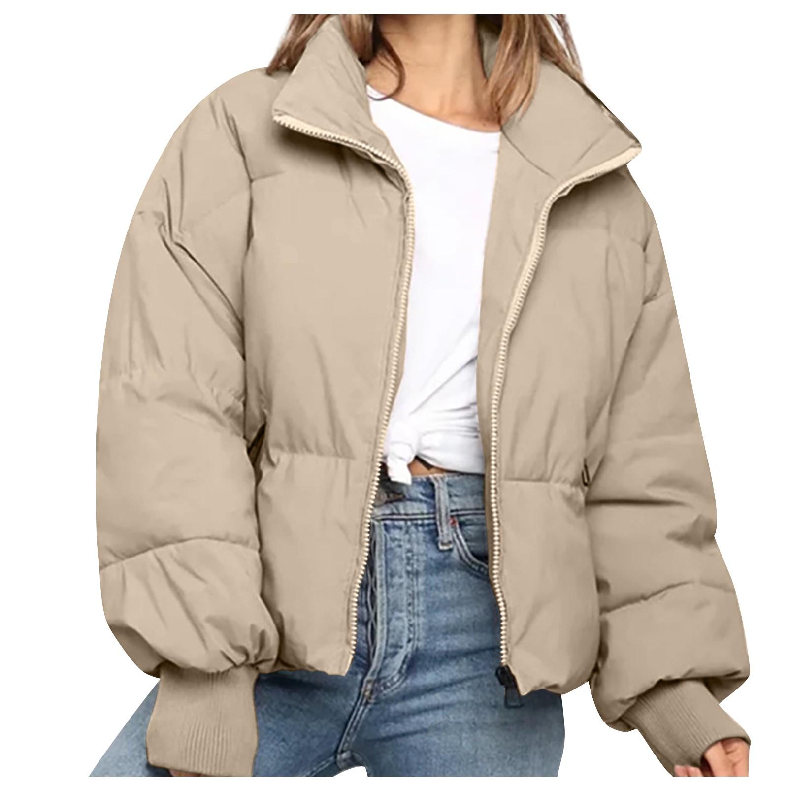 Женское свободное и тонкое теплое пальто, короткая пуховая хлопковая куртка S хаки