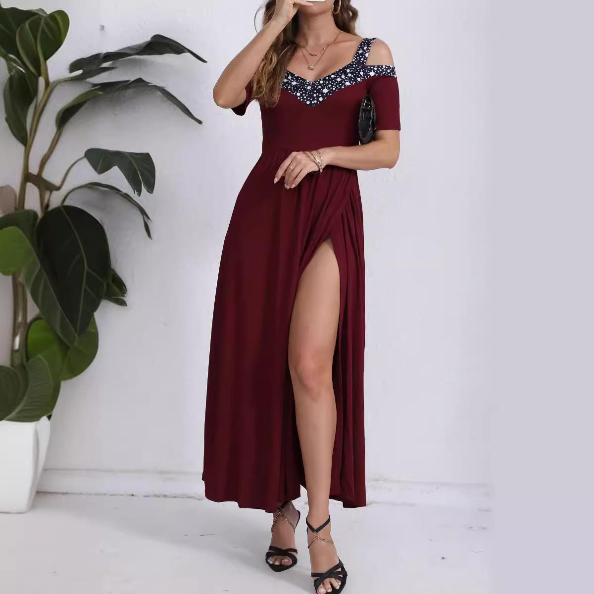 Женское сексуальное длинное платье с коротким рукавом и разрезом на подтяжках 5XL бордовый