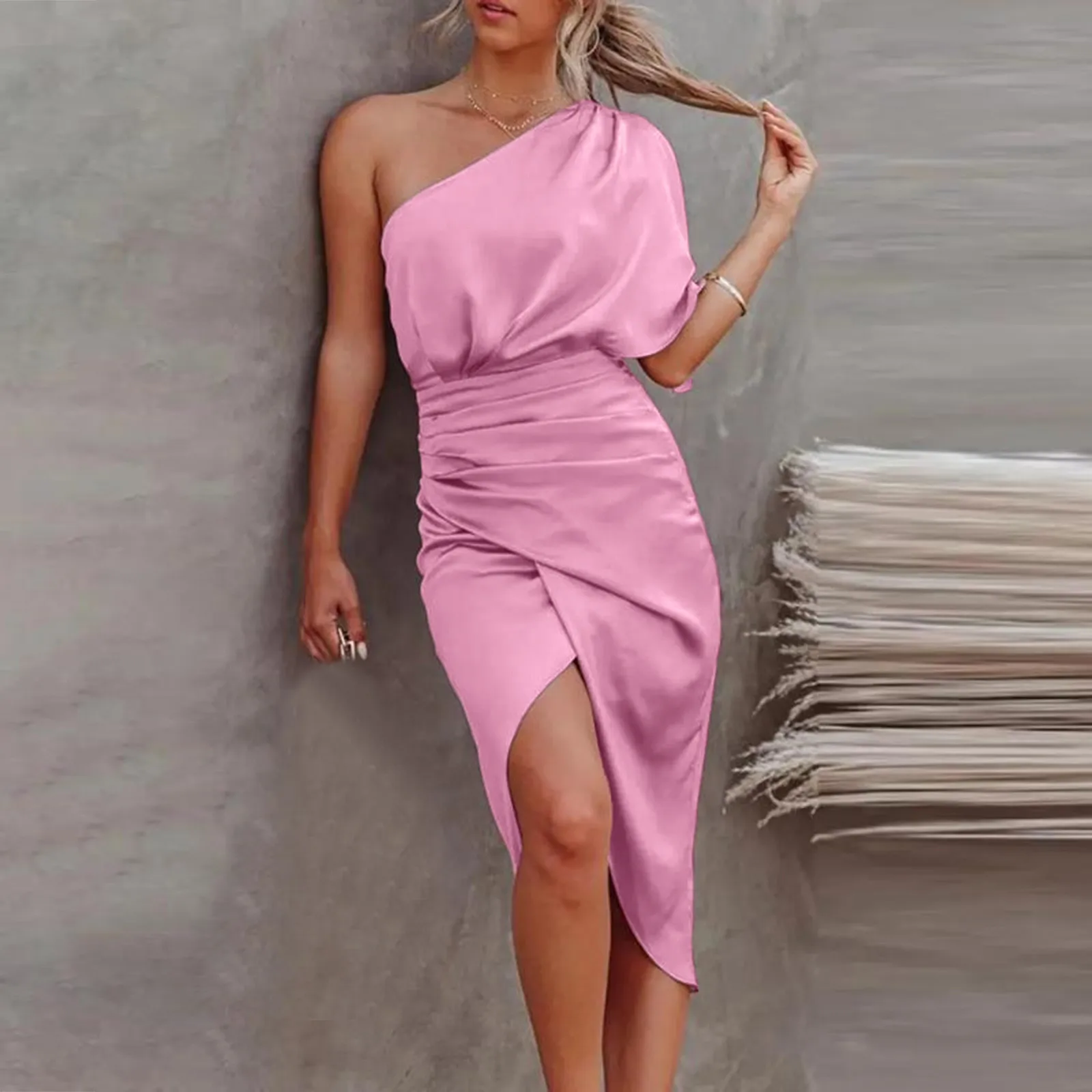 Женское сексуальное летнее однотонное платье с открытыми плечами и бедрами