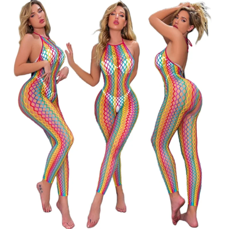 Женское сексуальное нижнее белье, женское боди, Женское боди с лямкой на шее и открытой спиной, Радужное пляжное боди