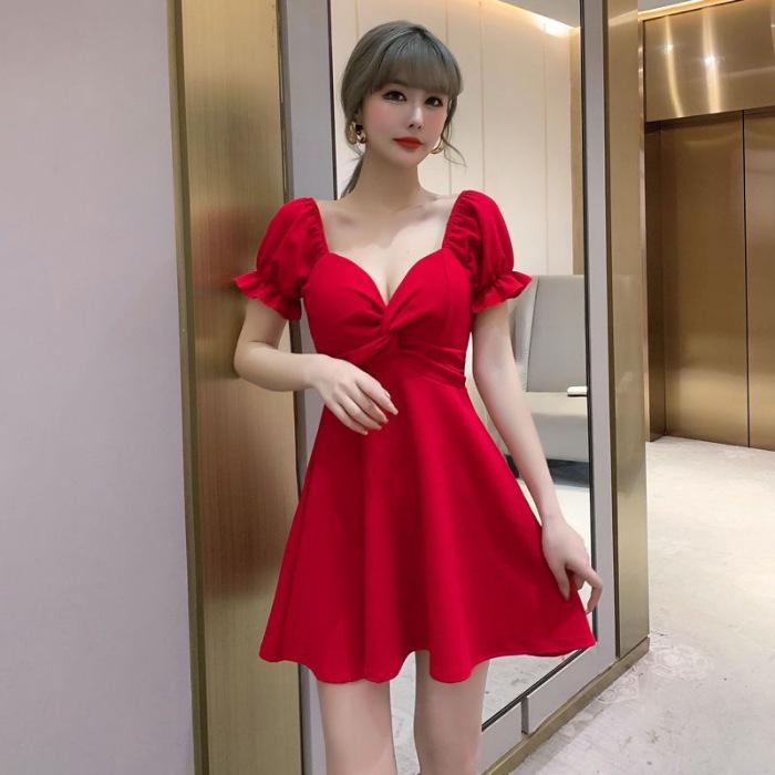 Женское сексуальное платье А-силуэта с глубоким вырезом для ночного клуба и работы техником XL красный
