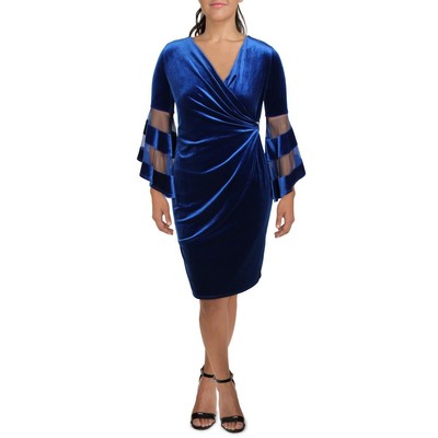 Женское синее бархатное платье с запахом до колен R-M Richards BHFO 8040, Синий