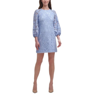 Женское синее кружевное короткое платье с цветочным принтом Vince Camuto BHFO 7753, Sky