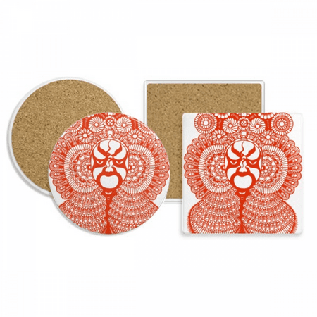 Red Paper-cut Art Chinese Opera Head Coaster Cup Mug Holder Absorbent Stone Cork Base Set