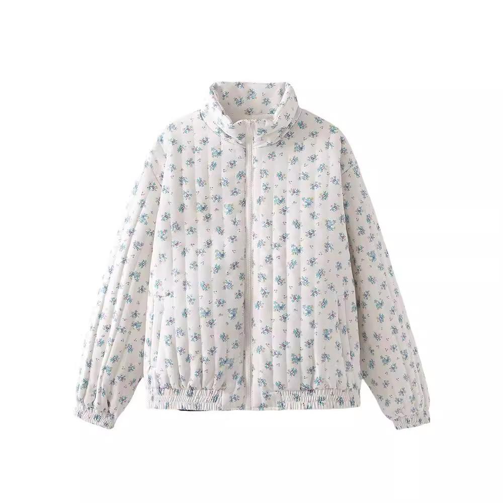 Женское стеганое пальто с цветочным принтом, полосатая свободная стеганая куртка на молнии, зимняя женская корейская модная свободная укороченная куртка с длинными рукавами S белый