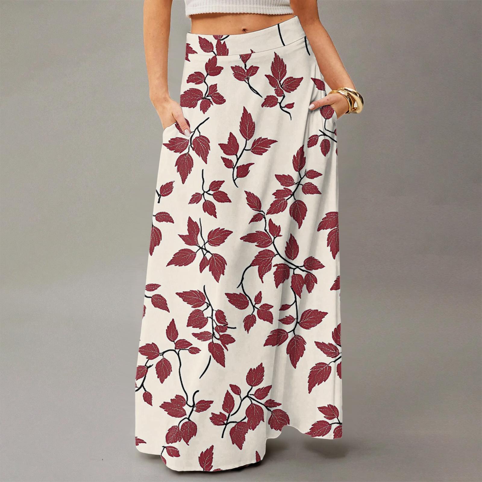 Женское струящееся платье макси, обычная повседневная юбка в стиле бохо с цветочным принтом L красный