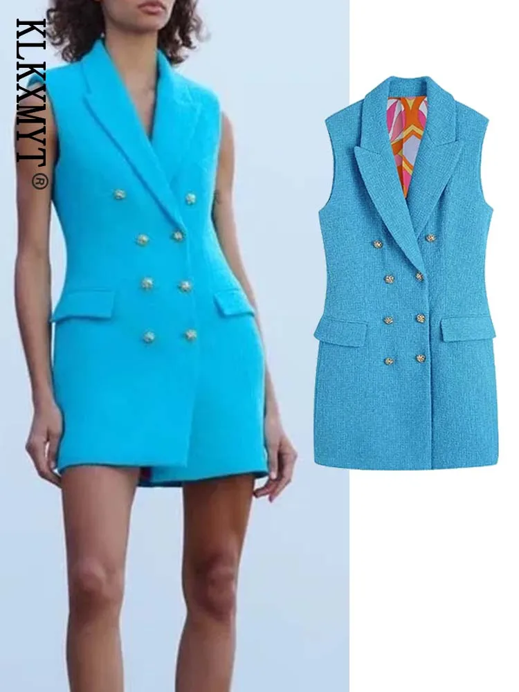 Женское твидовое мини-платье без рукавов, с двойным рядом пуговиц