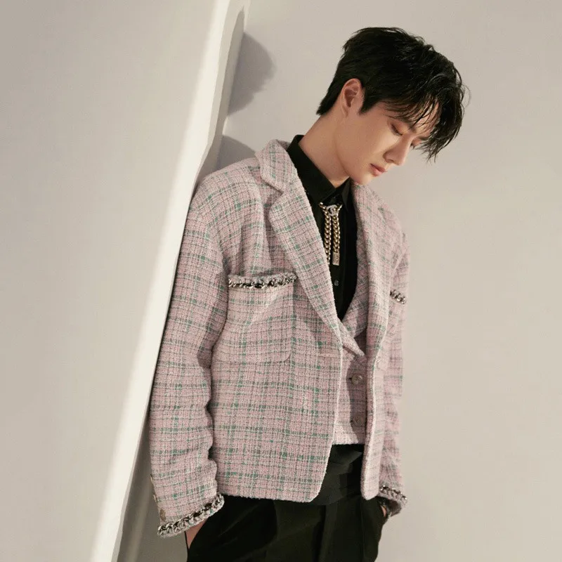 Однотонный облегающий костюм, блейзеры, пальто, однобортный, в Корейском стиле, для осени и зимы, 2022 цвет, Повседневная Новинка, мужская версия