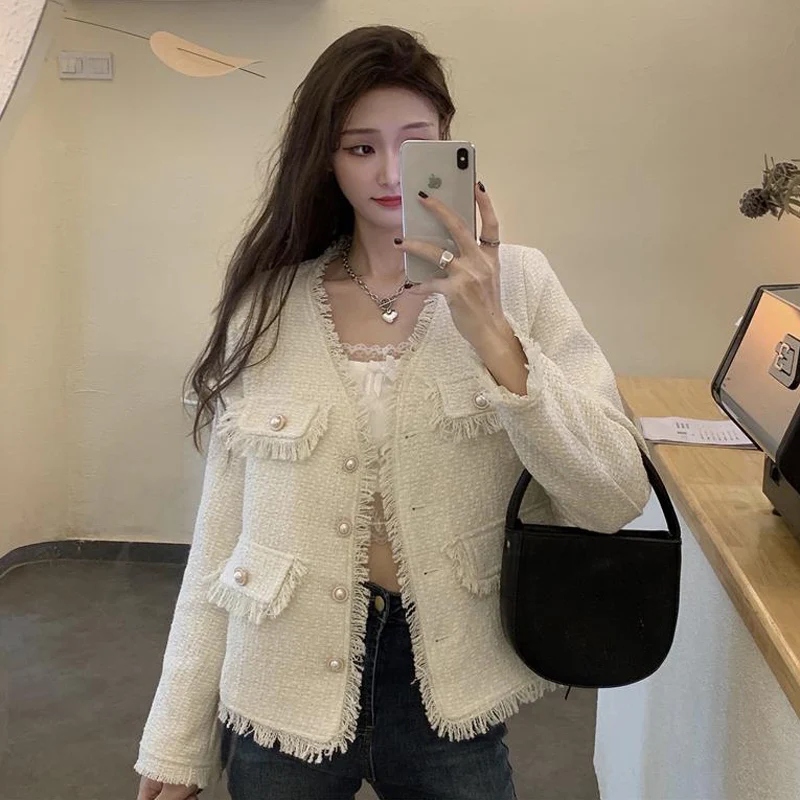 Женское твидовое шерстяное пальто, повседневное короткое пальто с длинным рукавом, Осень-зима 2021
