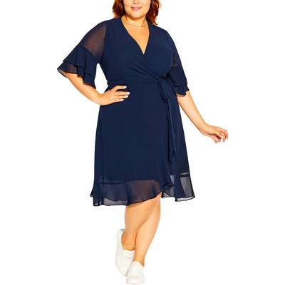 Женское темно-синее платье City Chic с v-образным вырезом и запахом до колена, BHFO 9892, Navy