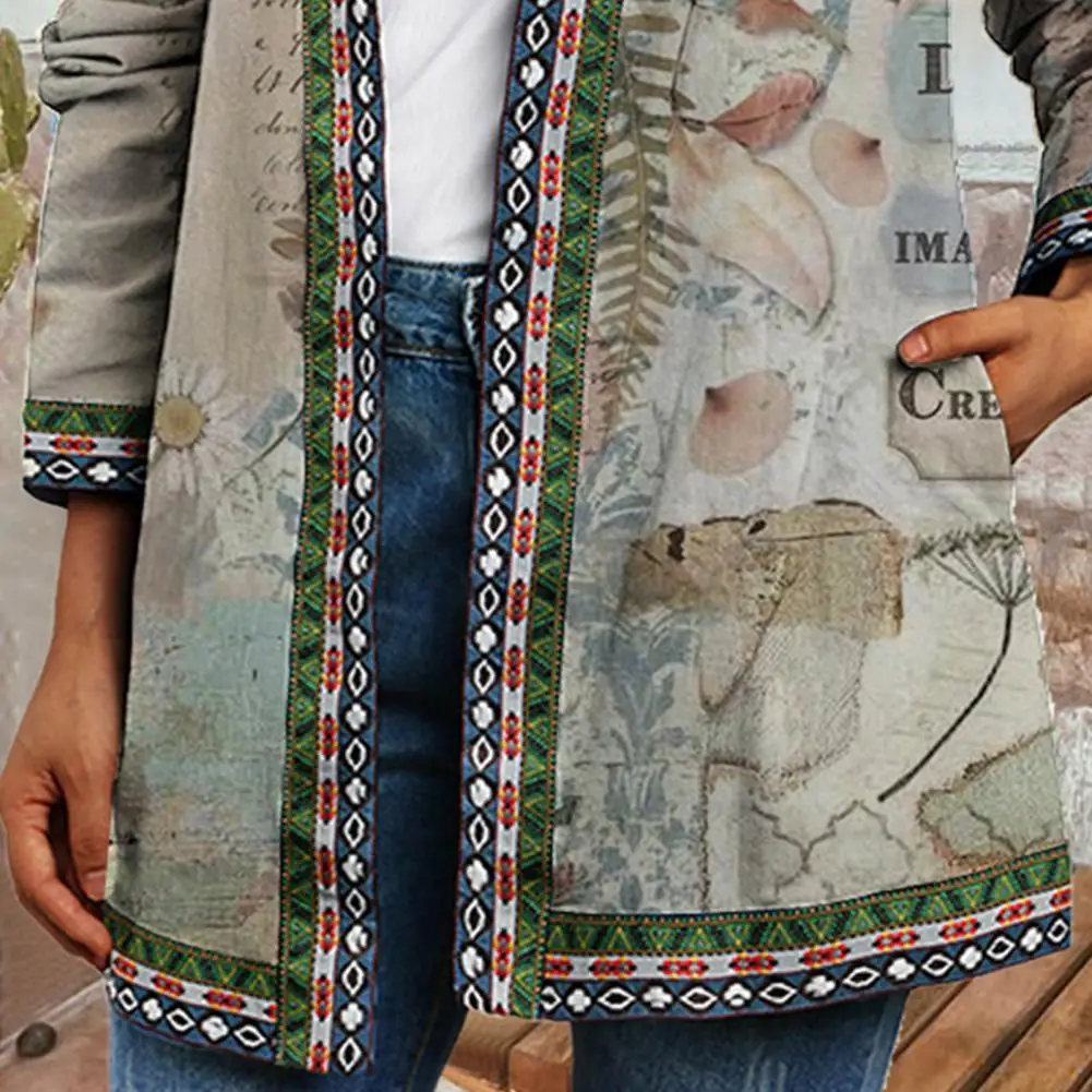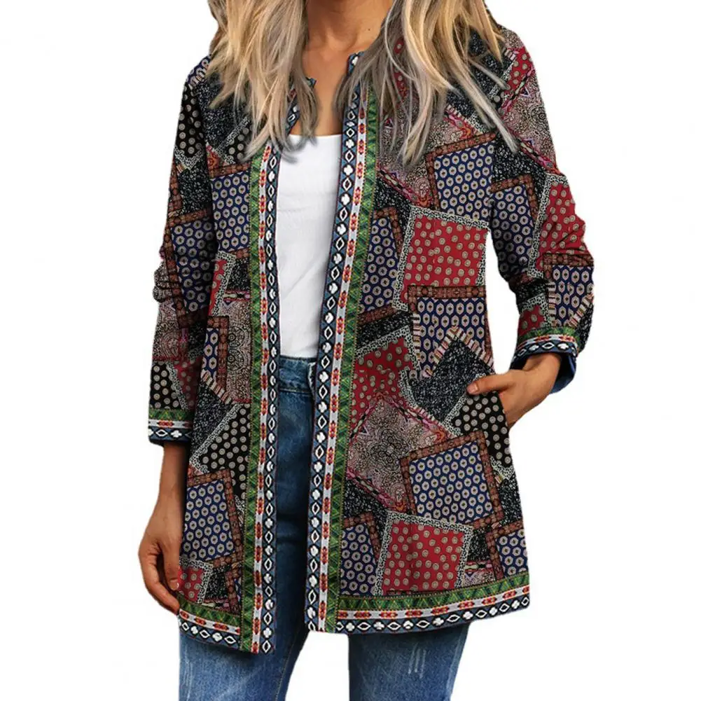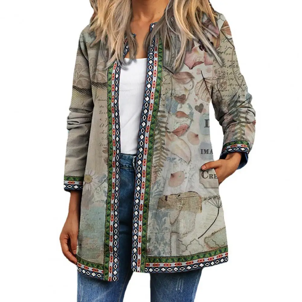 Женское теплое пальто в этническом стиле, осеннее пальто с принтом листьев, винтажное Женское пальто, пальто с принтом, новинка 2021