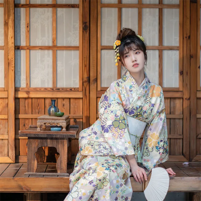 Женское традиционное платье для косплея в японском стиле хаори юката, банное платье с цветочным принтом сакуры, кимоно для представлений и танцев