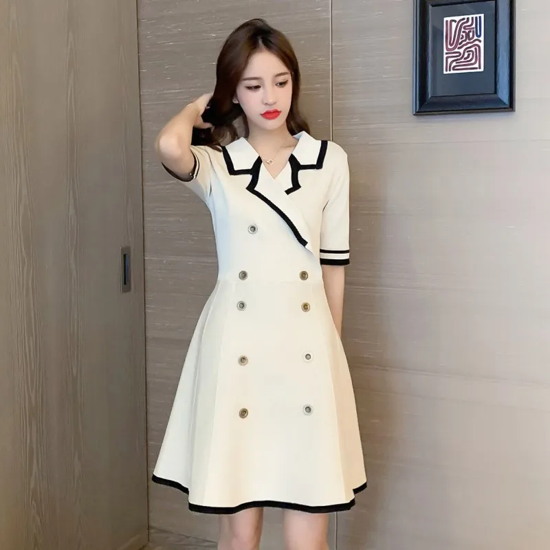 Женское трикотажное платье в полоску, элегантное платье-свитер с коротким рукавом и высокой талией в корейском ретро стиле, лето