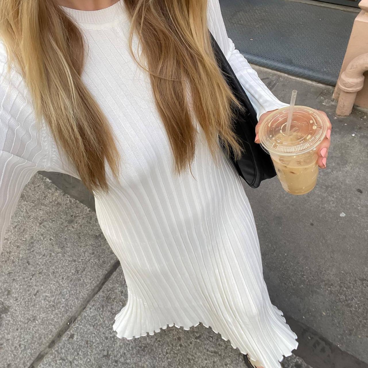 Женское трикотажное платье макси со шнуровкой, осеннее, с высокой талией, модное, пэчворк, с длинным рукавом, свободное, цельное, платье, бандажное, трикотажное платье XS белый