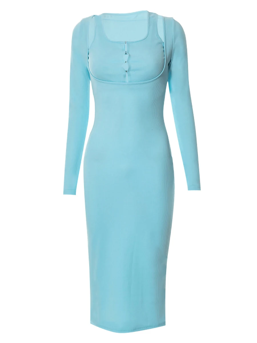 Женское трикотажное платье-миди в рубчик, однотонное платье с длинным рукавом, укороченный топ без рукавов с пуговицами спереди и жилетом