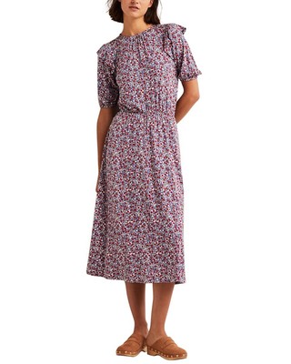 Женское трикотажное платье миди Boden с рюшами, Riveria blue petal paisley