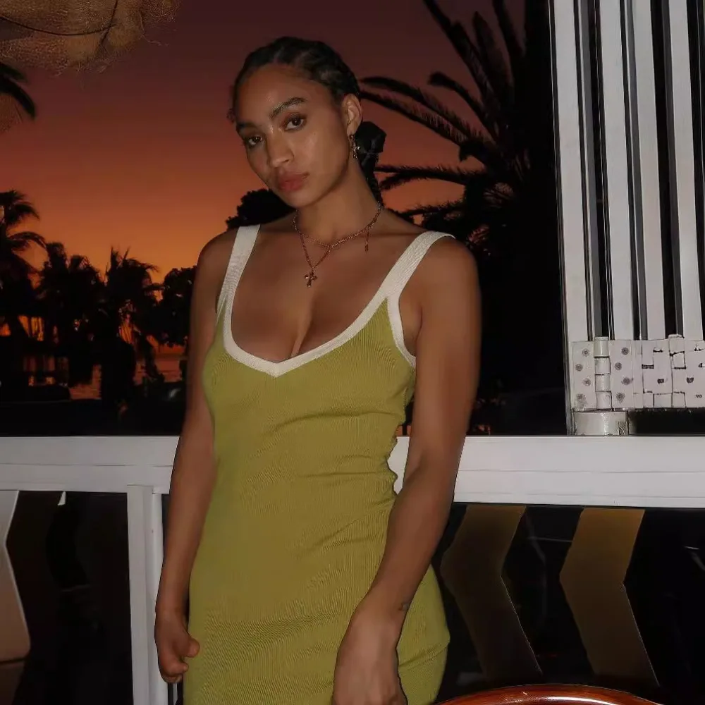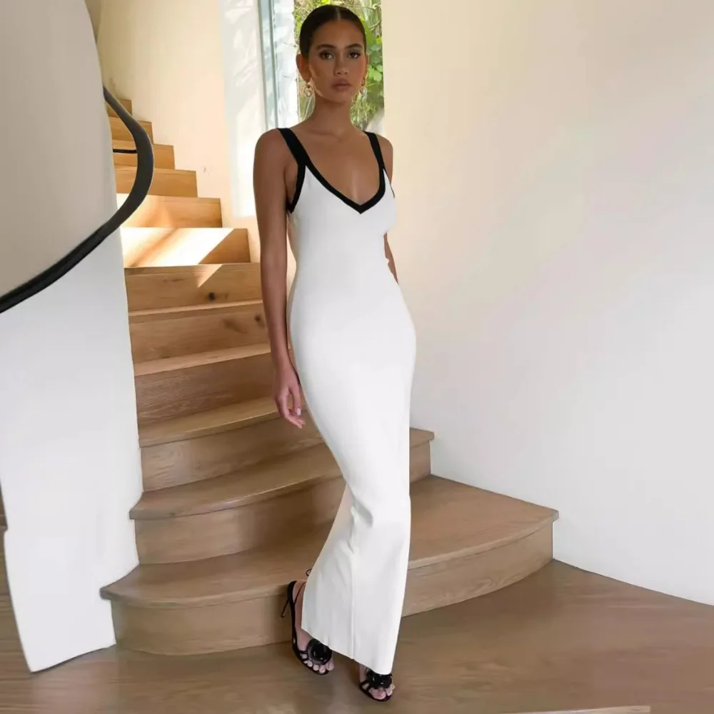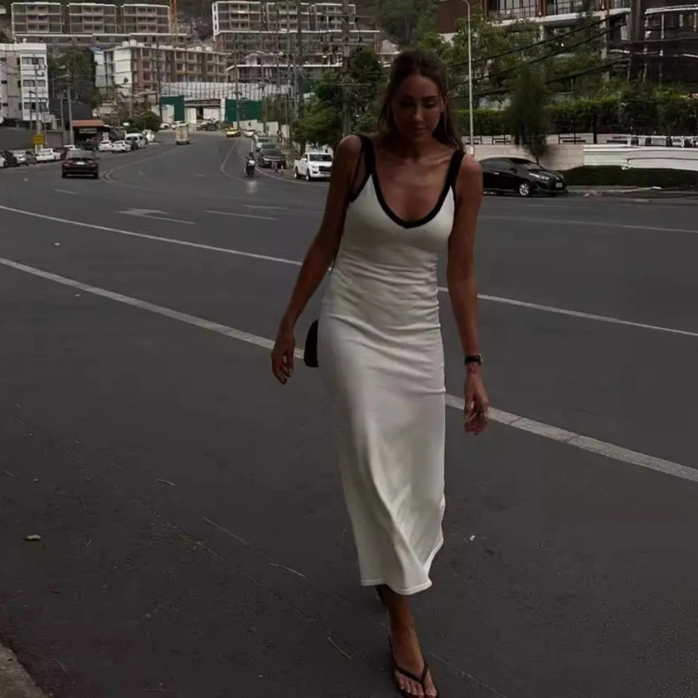Женское трикотажное платье на бретельках, белое длинное платье с разрезом сзади