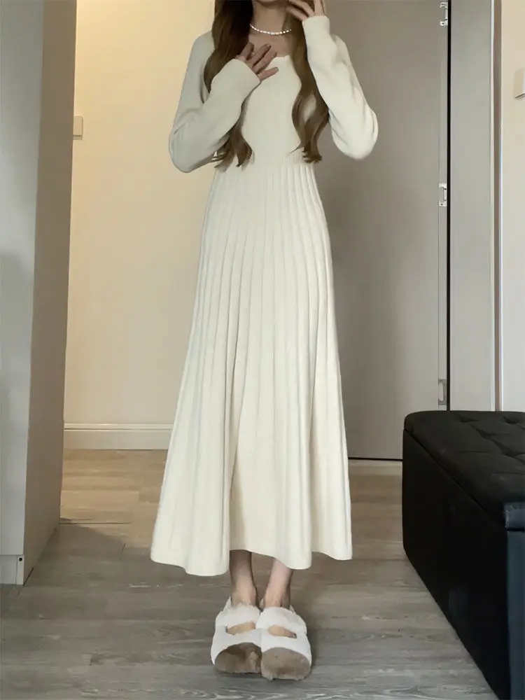 Женское трикотажное платье-свитер до щиколотки, с высоким воротником