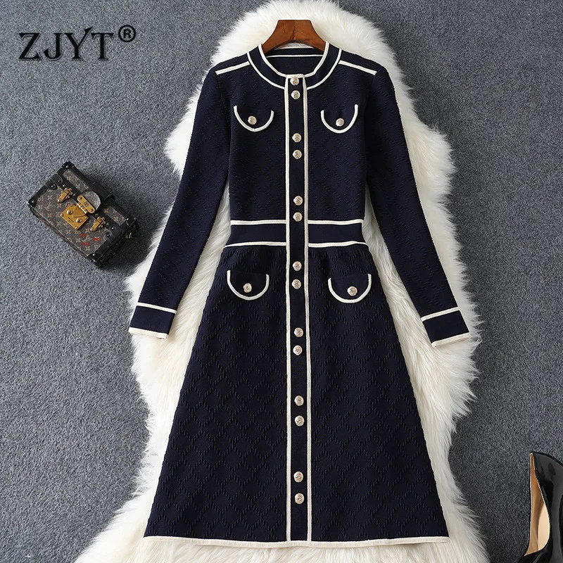 Женское трикотажное платье-свитер на пуговицах, с длинным рукавом