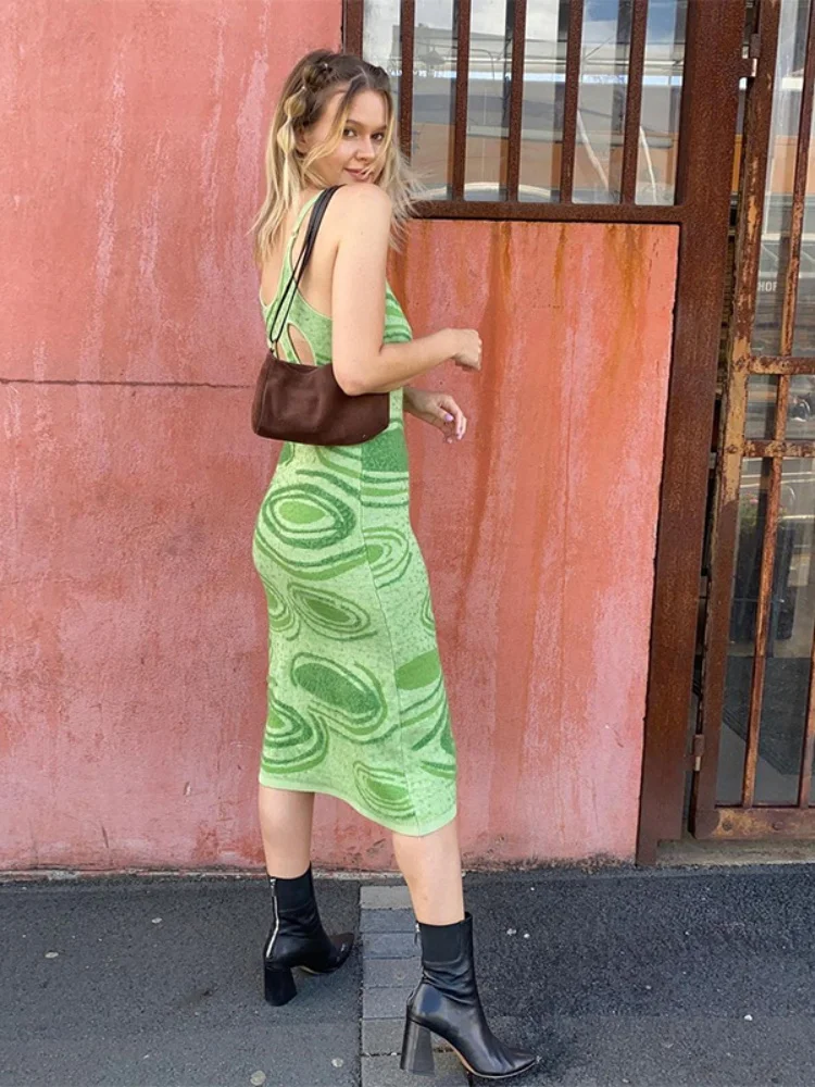 Женское трикотажное платье-свитер средней длины, с открытой спиной