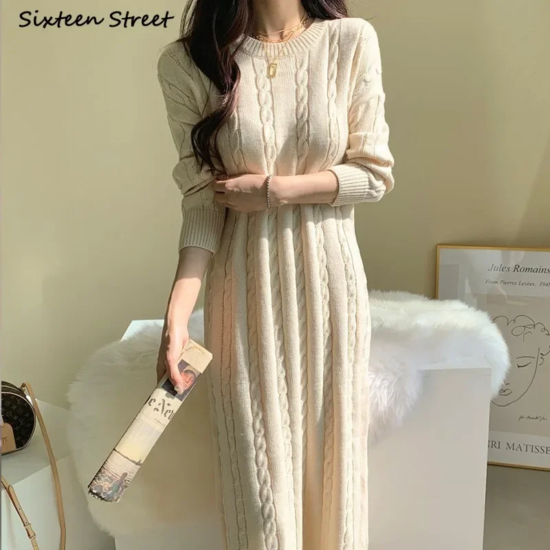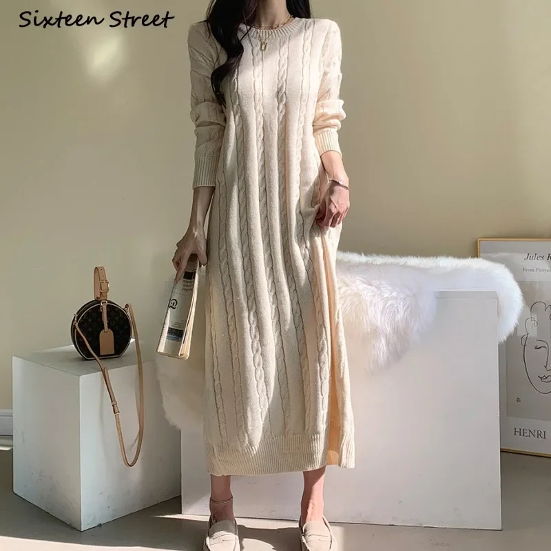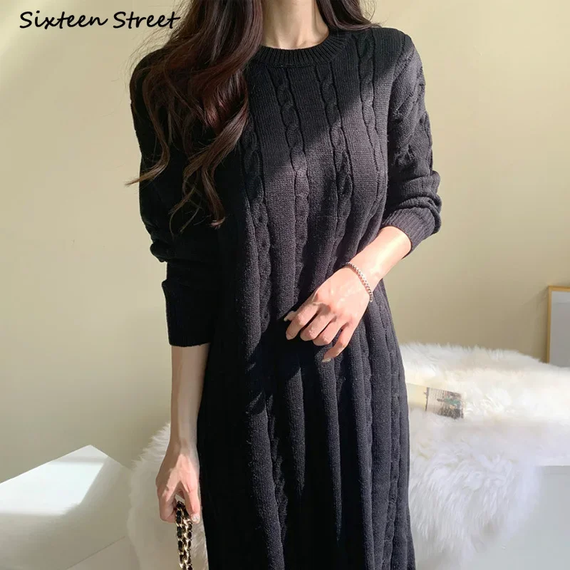 Женское трикотажное платье-свитер с круглым вырезом, в Корейском стиле