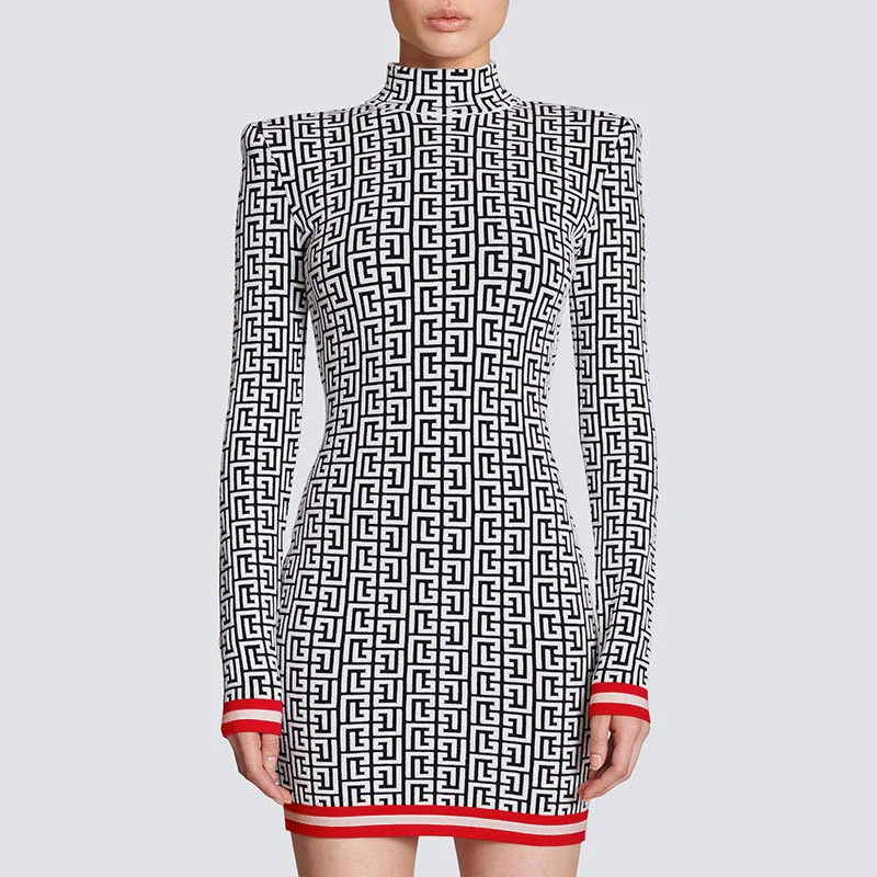 Женское трикотажное платье с длинным рукавом, с высоким воротником