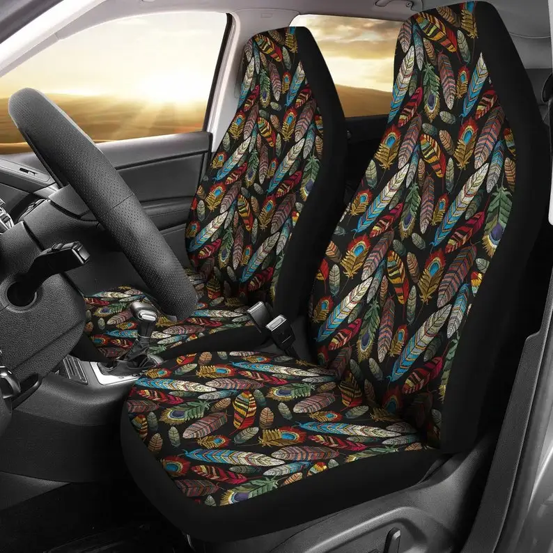 Colorful Feathers Car Seat Covers Pair, 2 Front Seat Covers, Car Seat Protector, Car Accessories
