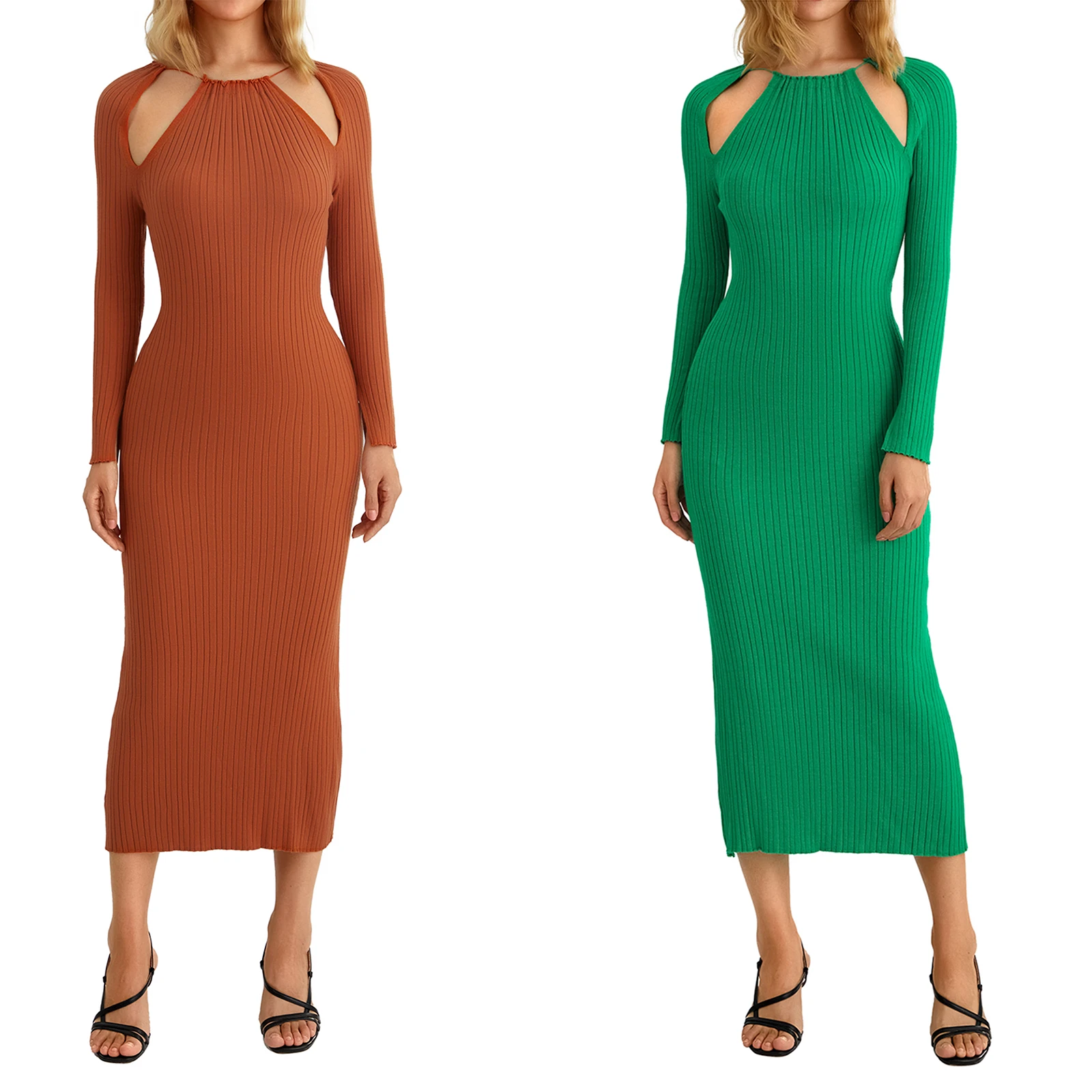 Женское трикотажное платье с круглым вырезом и длинным рукавом