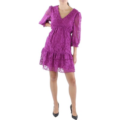 Женское фиолетовое мини-платье прямого кроя с рукавами 3/4 Gabby Skye BHFO 9743, Пурпурный