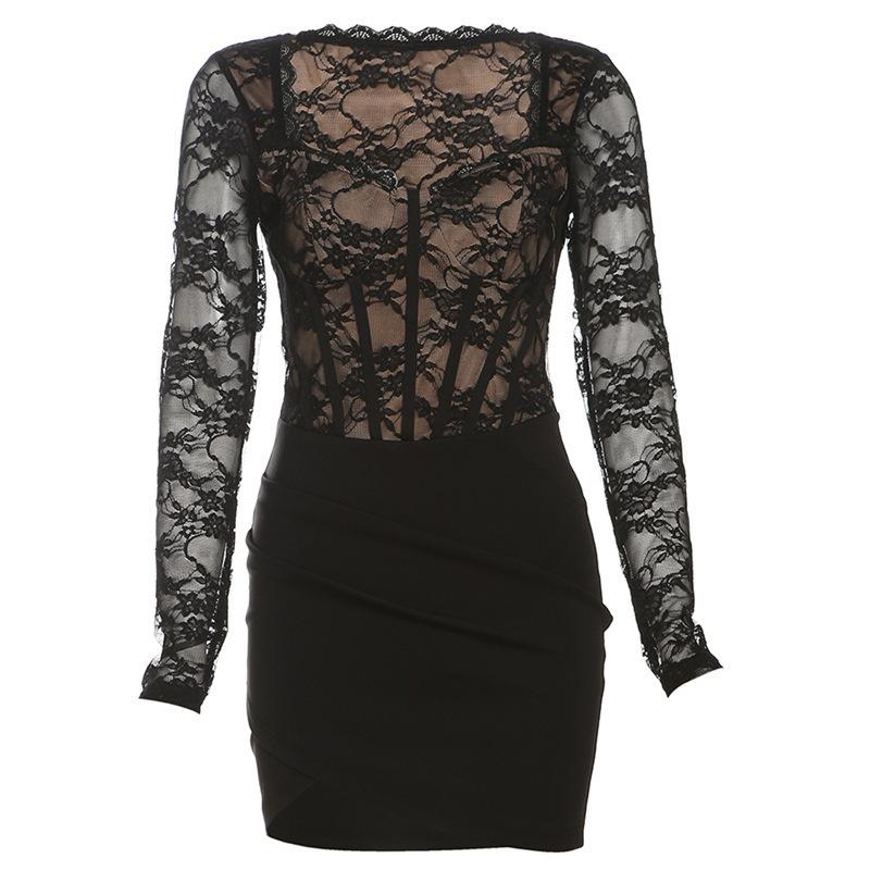 Женское французское сексуальное платье Royal Sister с квадратным воротником и длинными рукавами, облегающее, с сумкой-ягодицей M чёрный