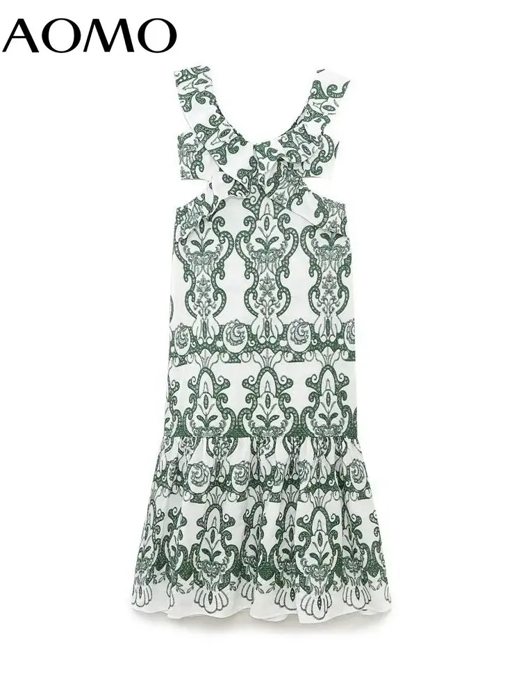 Женское хлопковое платье с вышивкой AOMO, зеленое винтажное пляжное длинное платье с оборками на рукавах, 6H399A, лето 2023