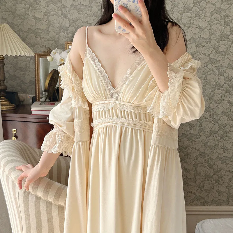 Женское хлопковое платье с кружевом, 2 предмета, свободного покроя