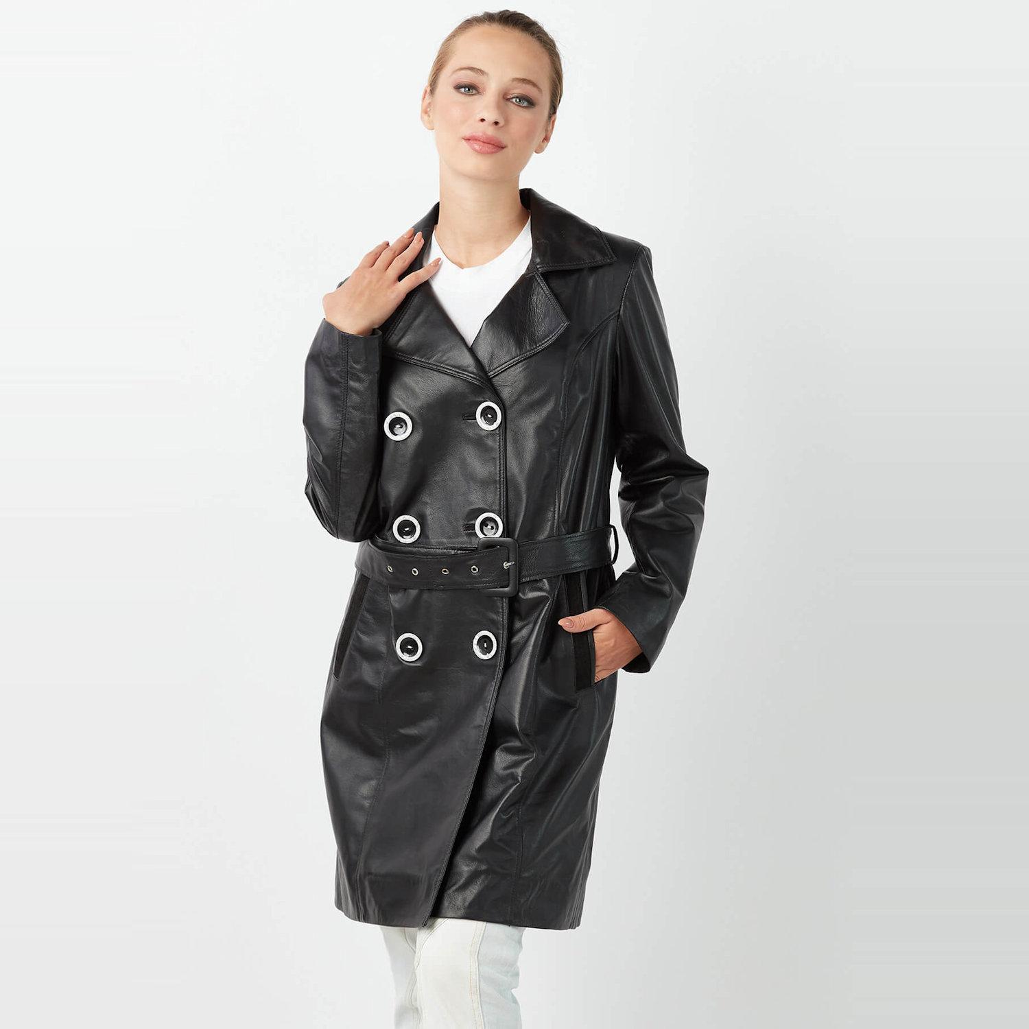 Женское черное пальто Ester из натуральной кожи XS чёрный