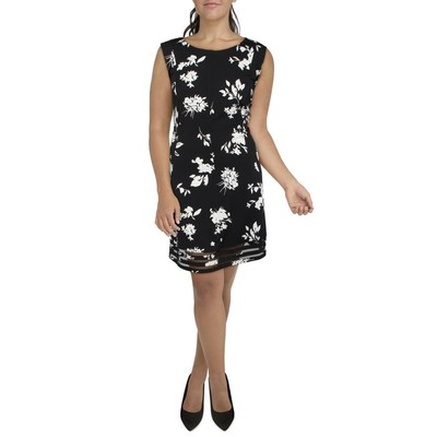 Женское черное платье-футляр в сеточку с цветочным принтом Jessica Howard Plus BHFO 1658, Black/white floral